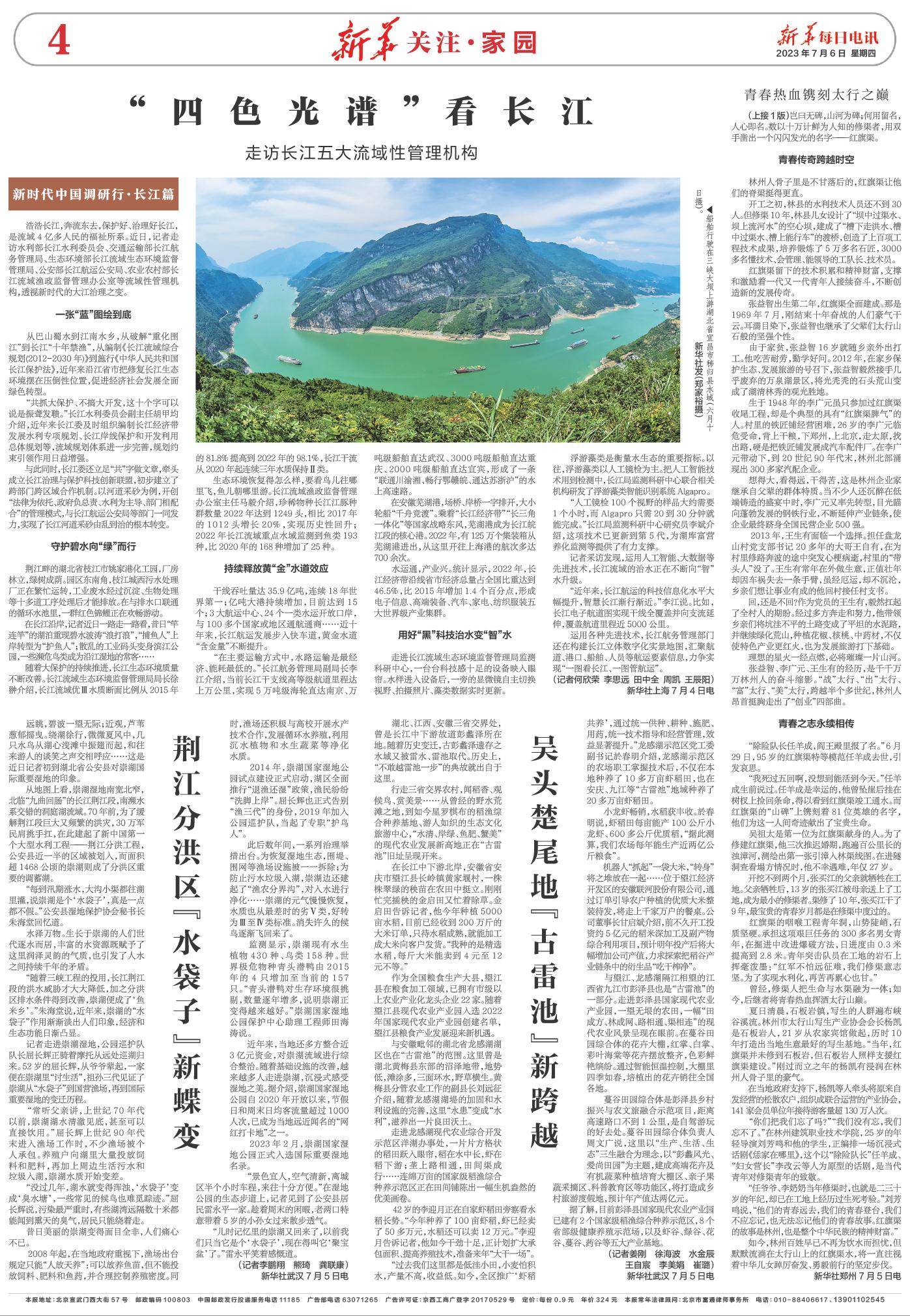 在长江沿岸,记者近日一路走一路看,昔日“竿连竿”的湖泊重现碧水波涛“浪打浪”,“捕鱼人”上岸转型为“护鱼人”;散乱的工业码头变身滨江公园,一些濒危鸟类成为沿江湿地的常客……