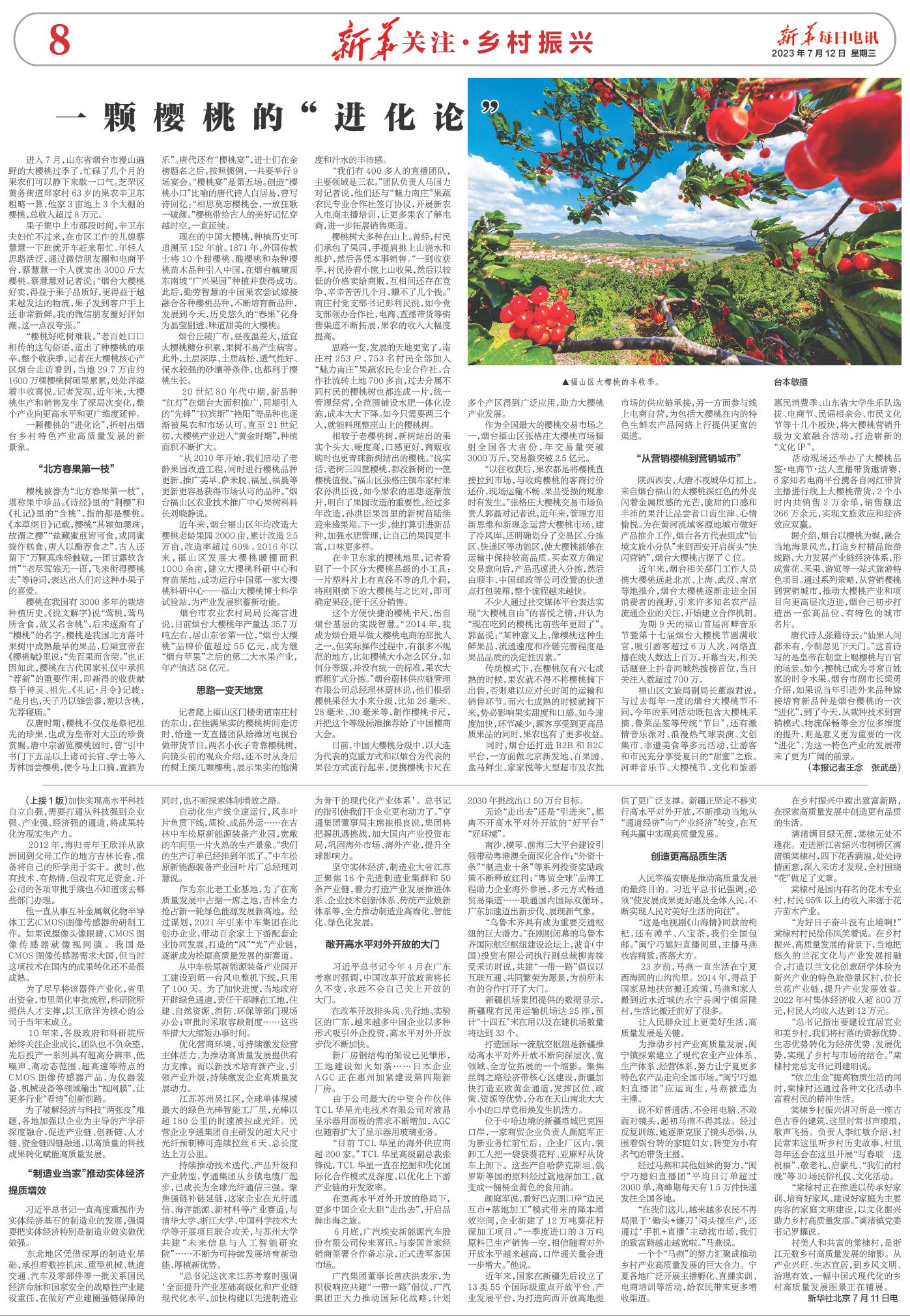 一颗樱桃的“进化论”,折射出烟台乡村特色产业高质量发展的新景象。