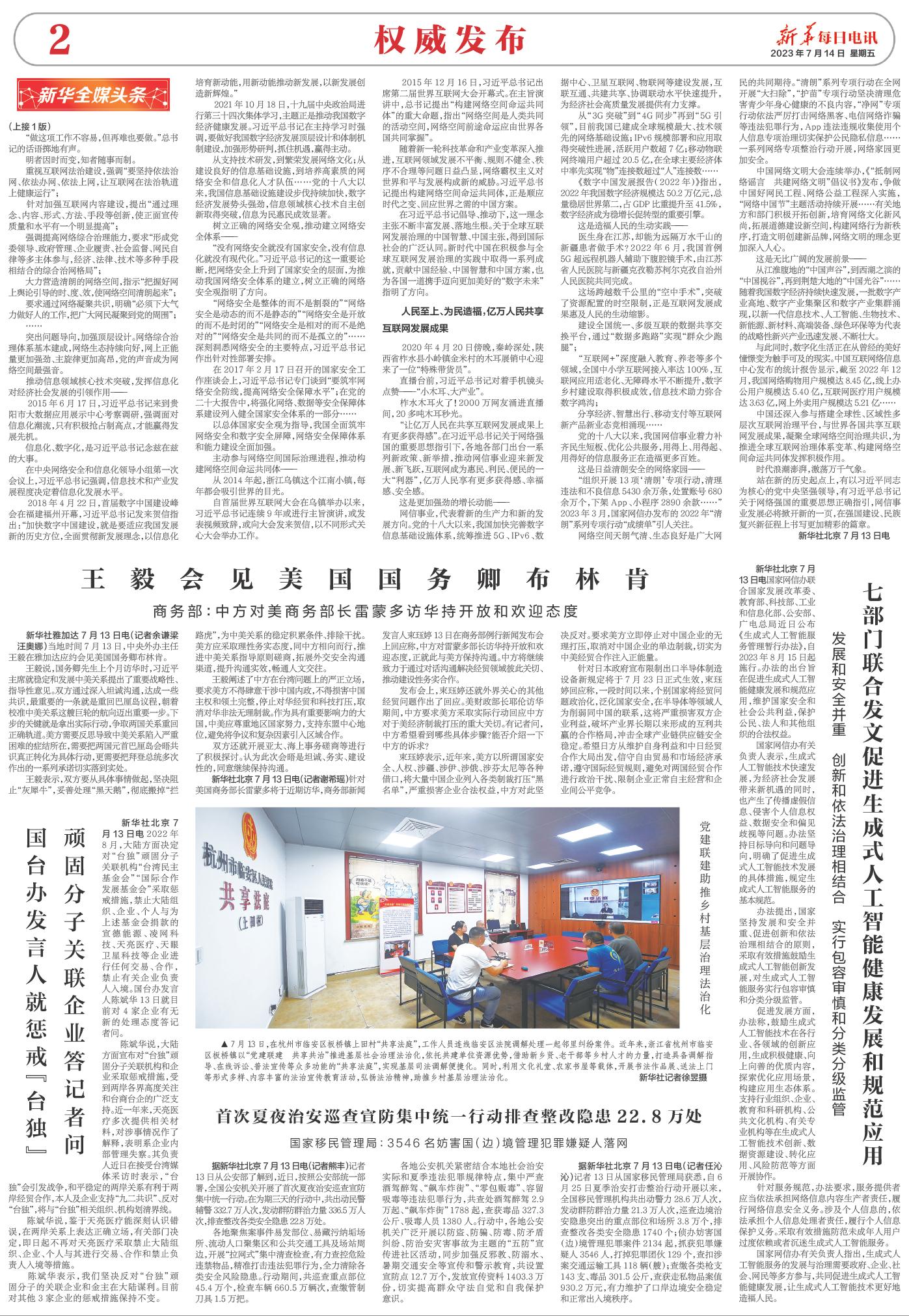 | ( 2023-07-14 ) 稿件来源:新华每日电讯 权威发布 |