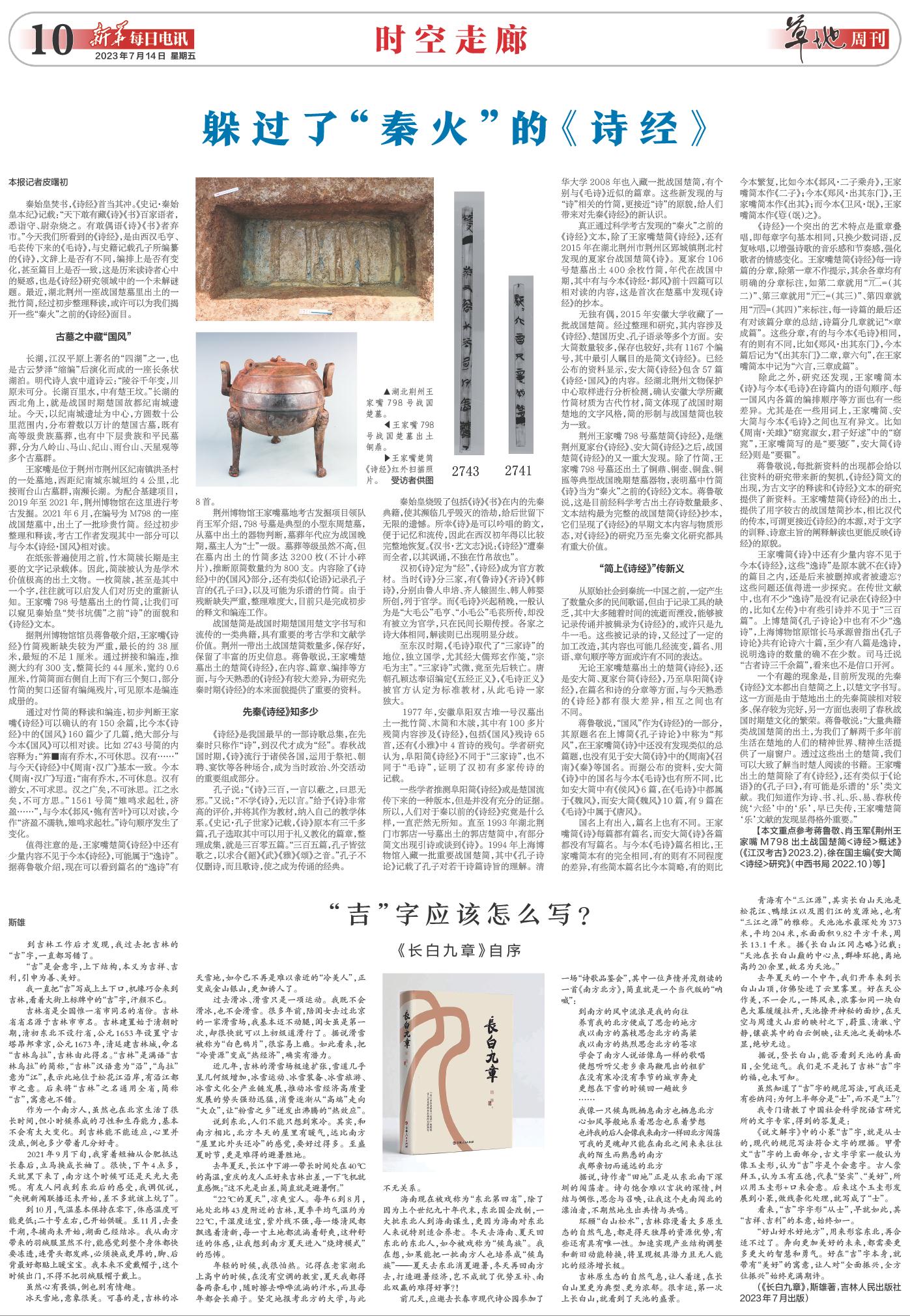 【本文重点参考蒋鲁敬、肖玉军《荆州王家嘴M798出土战国楚简<诗经>概述》(《江汉考古》2023.2),徐在国主编《安大简<诗经>研究》(中西书局2022.10)等】