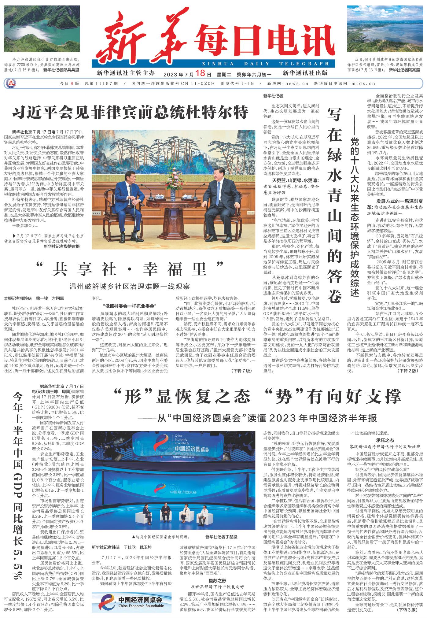 ( 2023-07-18 ) 稿件来源:新华每日电讯 要 闻