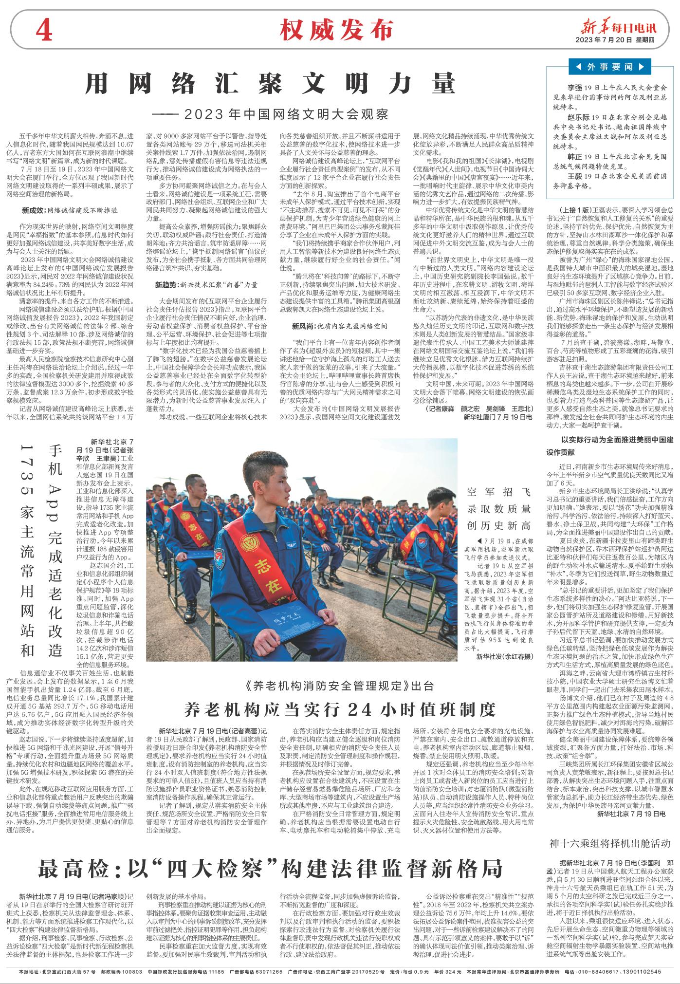 | ( 2023-07-20 ) 稿件来源:新华每日电讯 权威发布 |