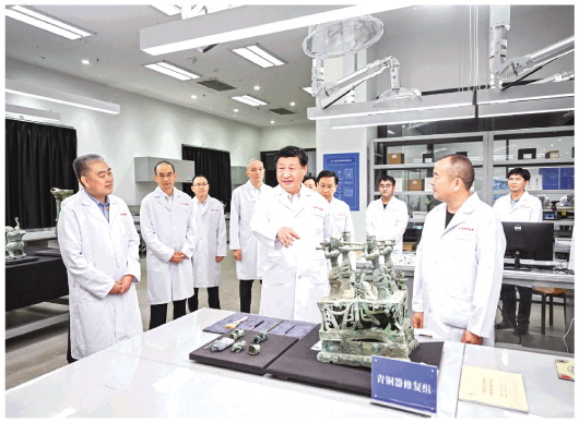 7月25日至27日,中共中央总书记、国家主席、中央军委主席习近平在四川考察。这是26日下午,习近平在位于德阳市广汉市的三星堆博物馆文物保护与修复馆,同现场工作人员亲切交流。 新华社记者谢环驰摄 |
