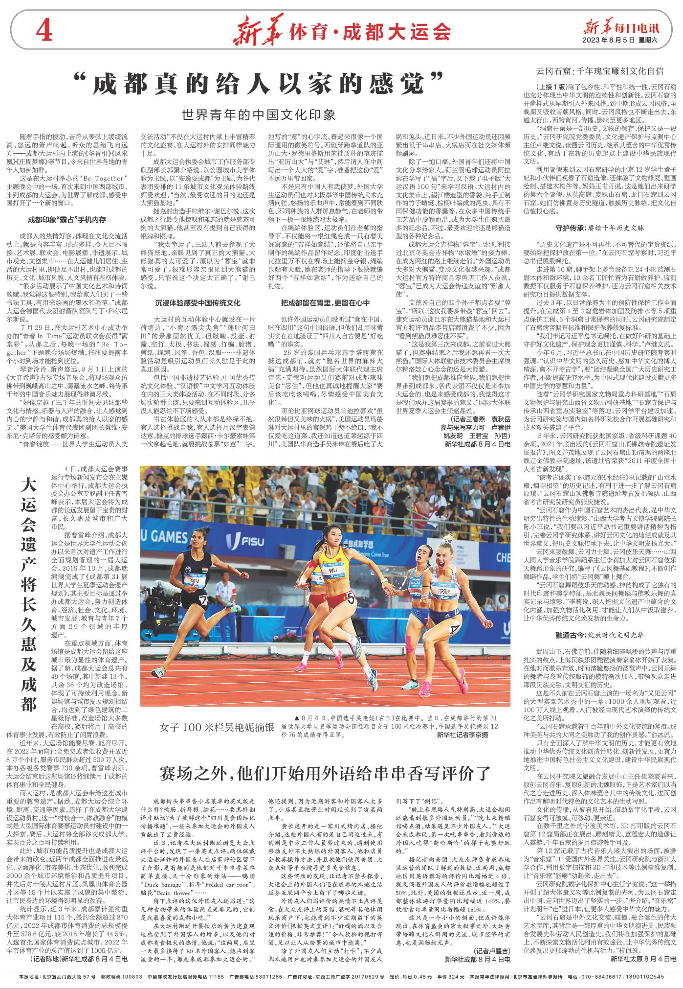 | ( 2023-08-05 ) 稿件来源:新华每日电讯 新华体育·成都大运会 |