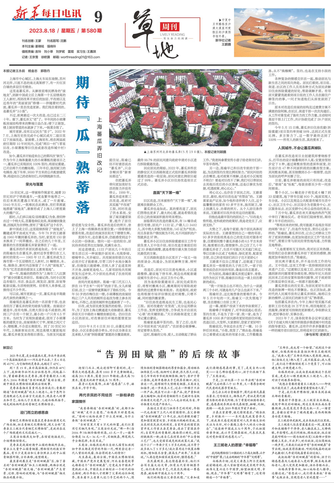 如今,蕃瓜弄开始迎来自己的第四次“新生”:作为今年上海体量最大的小梁薄板改建项目之一,蕃瓜弄已实现居民100%签约,将原址重建,已开启两个月的搬场期。三年半后,独用厨卫的电梯房、地下车库、9000平方米的公共配套建筑等,将迎回自己的老街坊们,共同拥抱新生活。