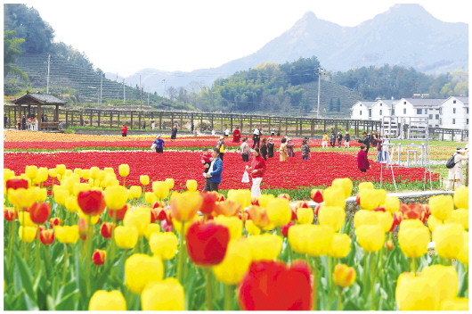 金华市浦江县210省道旁的鲜花农场(3月28日摄)。    新华社记者翁忻旸摄