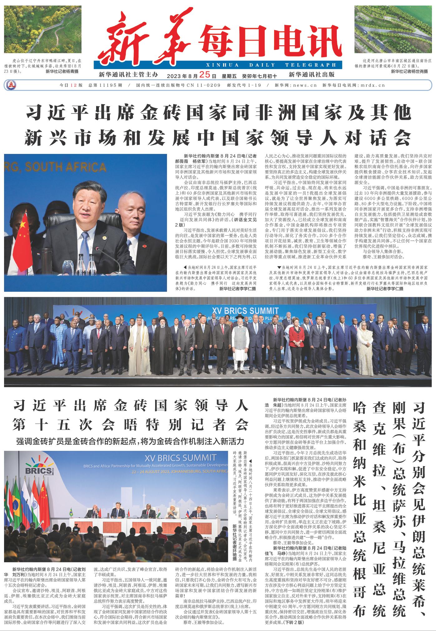 | ( 2023-08-25 ) 稿件来源:新华每日电讯 要 闻 |