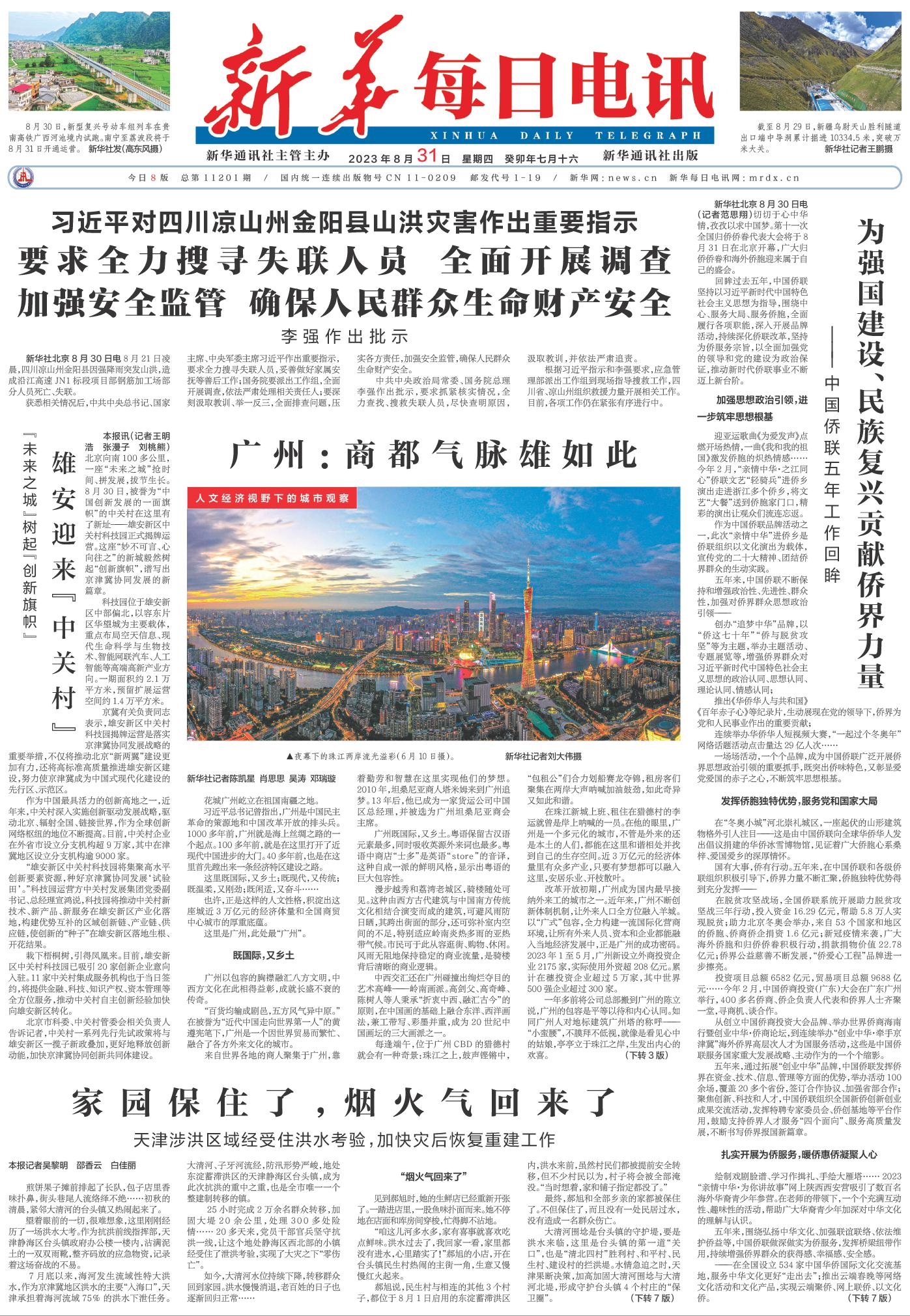 | ( 2023-08-31 ) 稿件来源:新华每日电讯 要 闻 |