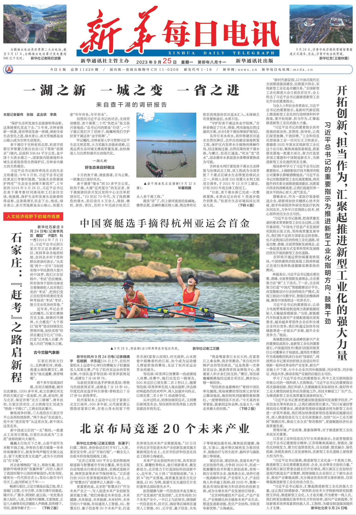 | ( 2023-09-25 ) 稿件来源:新华每日电讯 要 闻 |