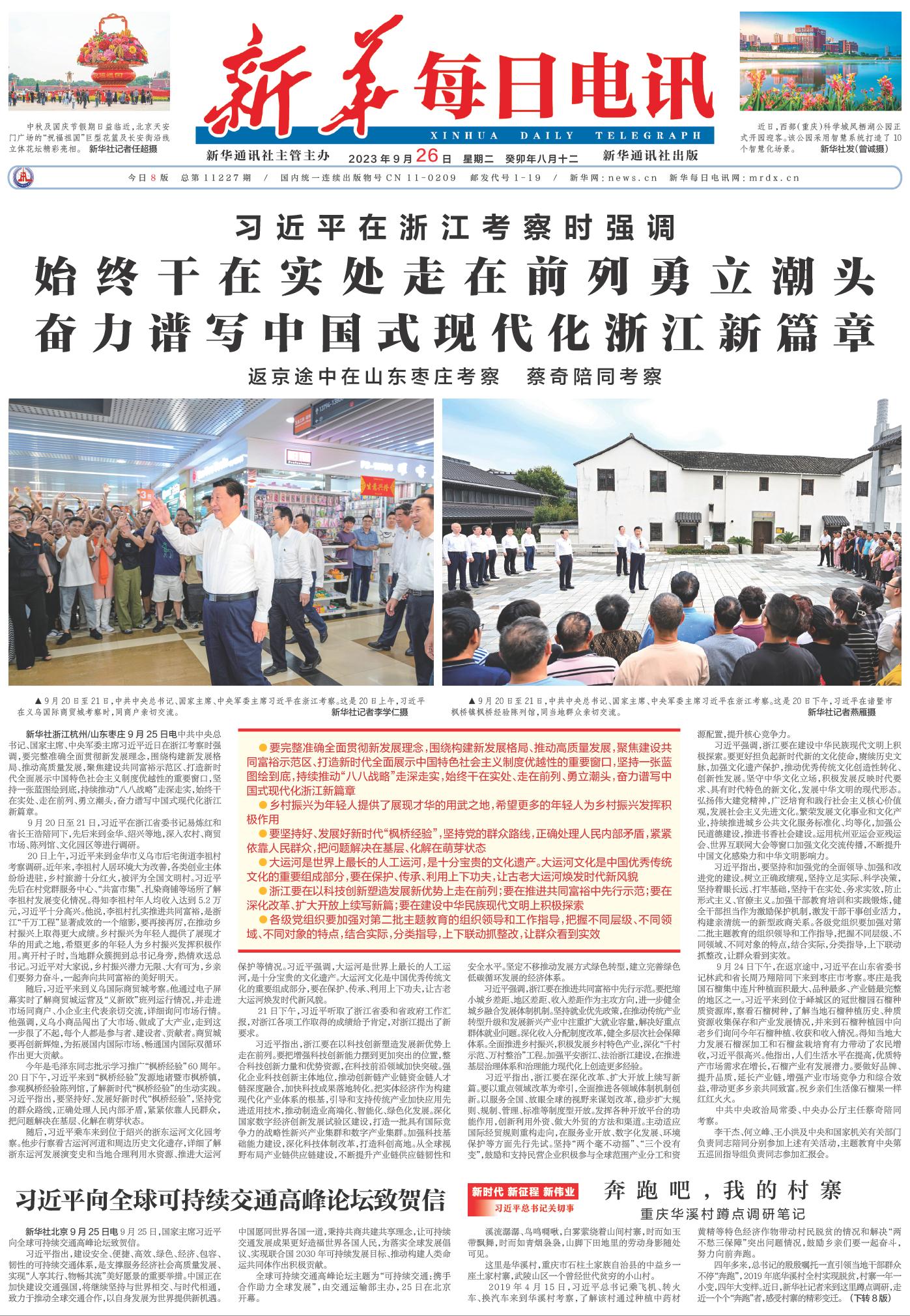 | ( 2023-09-26 ) 稿件来源:新华每日电讯 要 闻 |