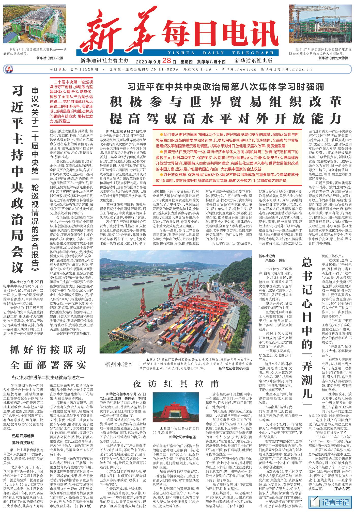 | ( 2023-09-28 ) 稿件来源:新华每日电讯 要 闻 |