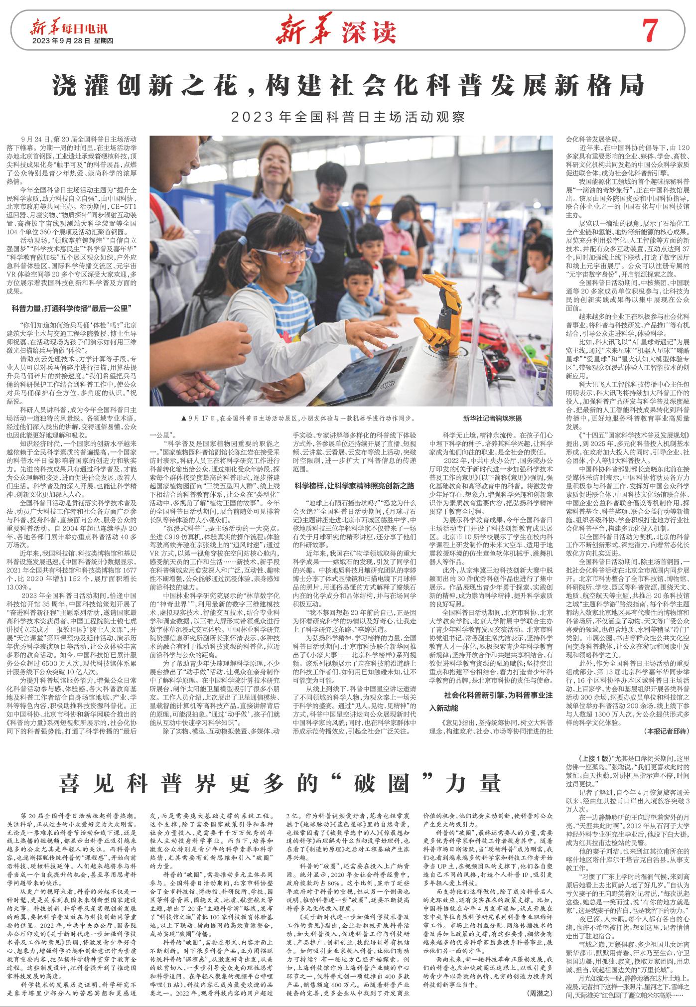 “沉浸式科普”,是主场活动的一大亮点。坐进C919仿真机,体验真实的操作流程;体验驾驶高铁奔驰在京张线上的“追风时速”;通过VR方式,以第一视角穿梭在空间站核心舱内,感受航天员的工作和生活……新技术、新手段在科普领域应用愈发深入和广泛,互动性、趣味性不断增强,公众能够通过沉浸体验,亲身感知前沿科技的魅力。