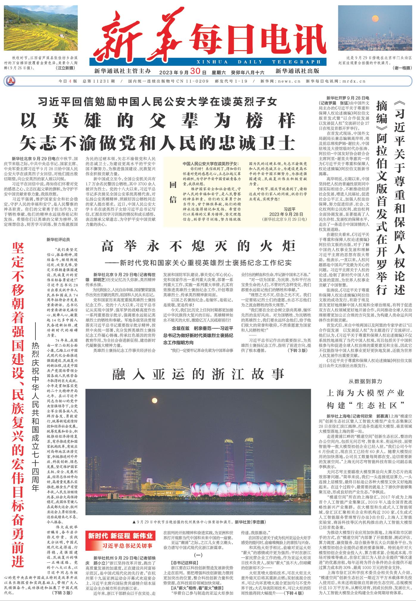 | ( 2023-09-30 ) 稿件来源:新华每日电讯 要 闻 |