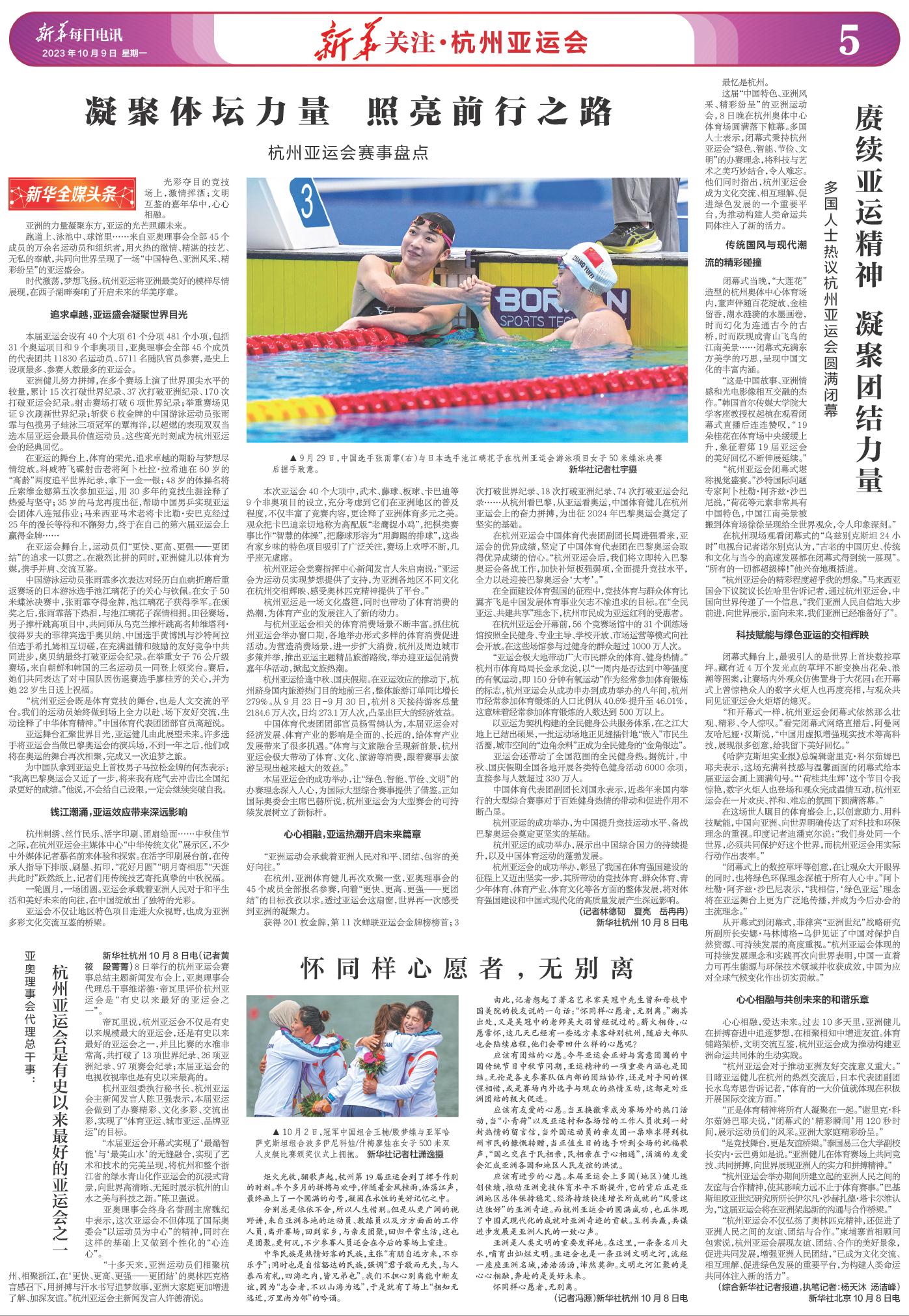 | ( 2023-10-09 ) 稿件来源:新华每日电讯 新华关注·杭州亚运会 |