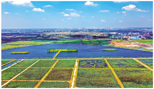 山东省菏泽市郓城县着力对彭庄煤矿张营采煤塌陷区进行生态修复和综合开发利用,2021年起联合山东省农科院,立足塌陷区实际,因地制宜规划建设乡村振兴示范园。该示范园聚焦“农业+”“生态+”模式开发了塘心休闲游乐湖、滨塘观光休闲带、健康水产养殖、藕莲鱼立体种养、优质莲藕栽培、光伏发电和绿色稻田种植区等“一湖一带四区”六大功能区,同步实现了生产、生态、休闲、观光融合发展,让昔日的采煤塌陷区变成农文旅三位一体的“聚宝盆”。