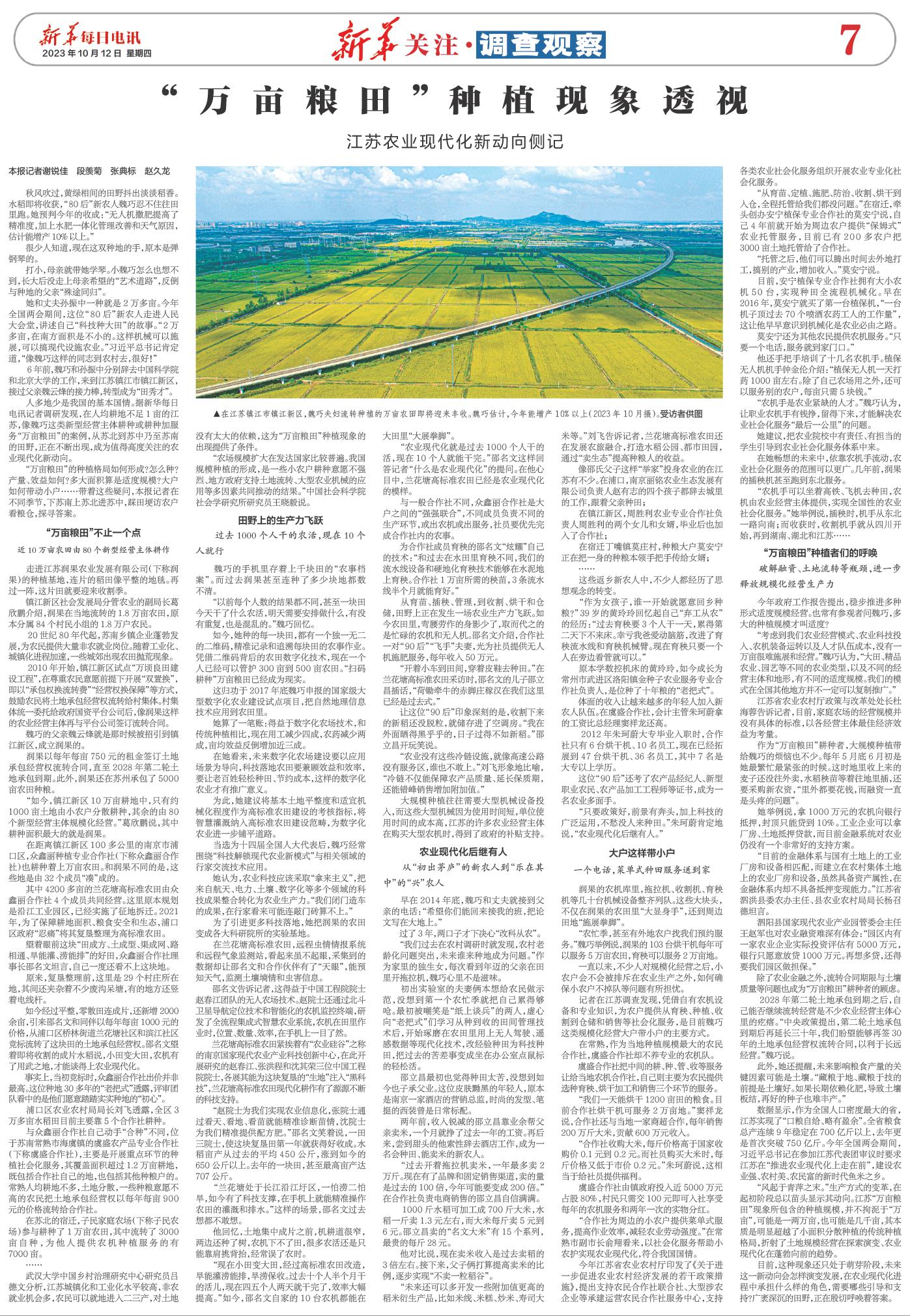 人多地少是我国的基本国情。据新华每日电讯记者调研发现,在人均耕地不足1亩的江苏,像魏巧这类新型经营主体耕种或耕种加服务“万亩粮田”的案例,从苏北到苏中乃至苏南的田野,正在不断出现,成为值得高度关注的农业现代化新动向。