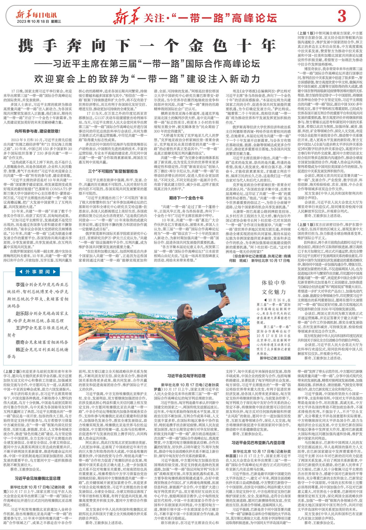 | ( 2023-10-18 ) 稿件来源:新华每日电讯 新华关注·“一带一路”高峰论坛 |
