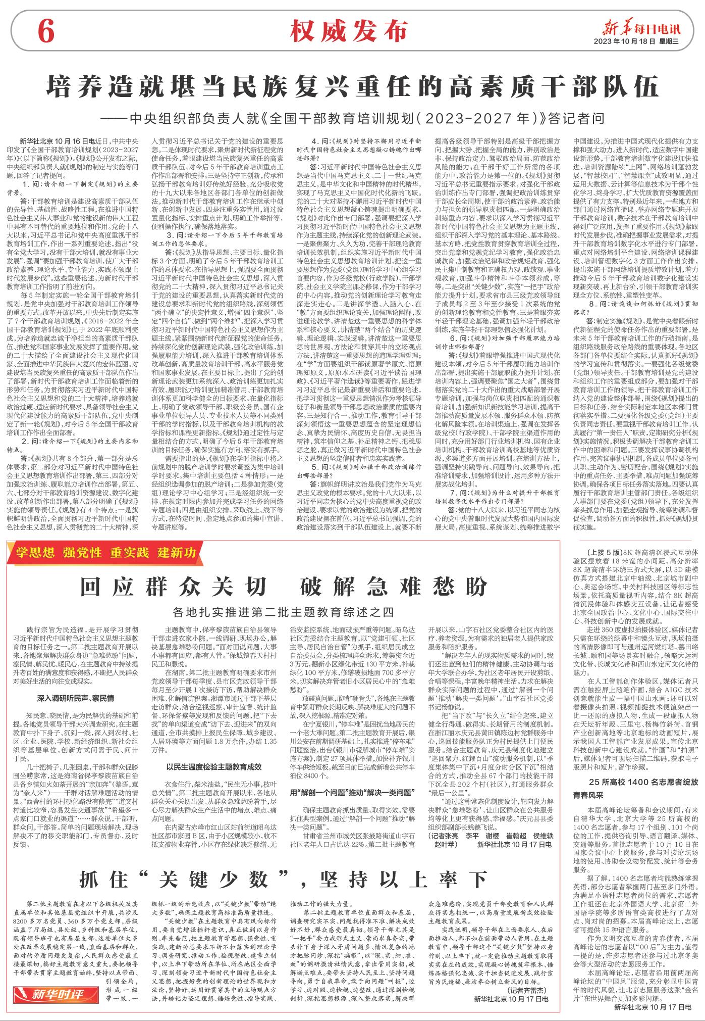 ——中央组织部负责人就《全国干部教育培训规划(2023-2027年)》答记者问 |