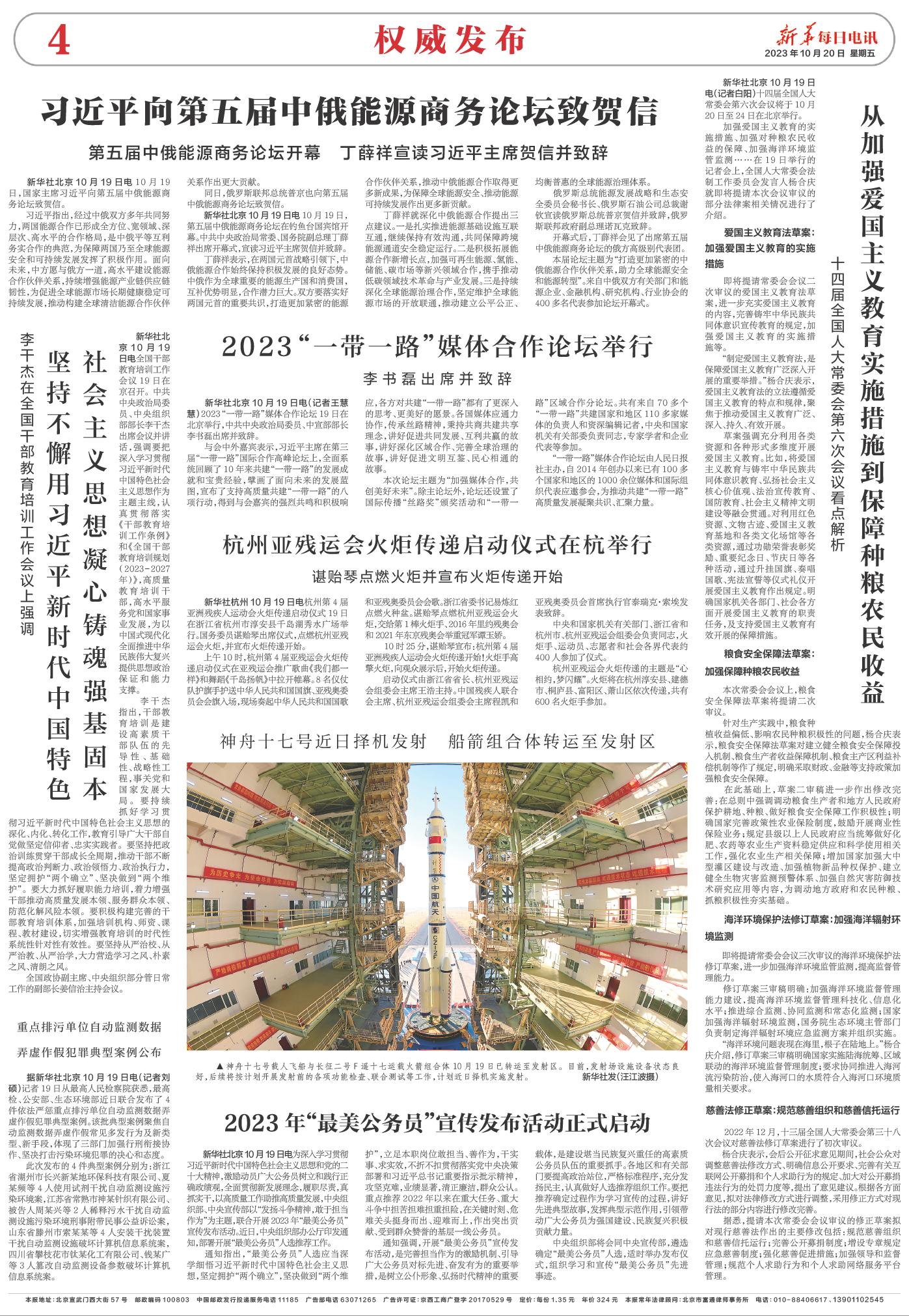 | ( 2023-10-20 ) 稿件来源:新华每日电讯 权威发布 |