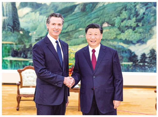 习近平愉快地忆及曾经访问加利福尼亚州的情形,介绍了中国绿色转型以及有关地方发展情况。习近平指出,发展好中美关系,需要汇聚各方力量。中美关系基础在民间,希望在人民,未来在青年,活力在地方。我高度重视并支持中美各界交往和地方合作。希望你此访增进双方相互了解,为扩大中国同加州合作、推动中美关系健康稳定发展发挥积极作用。中美在绿色发展、应对气候变化等领域合作潜力巨大,双方完全可以加强这方面合作,将其打造成中美关系发展新亮点。
