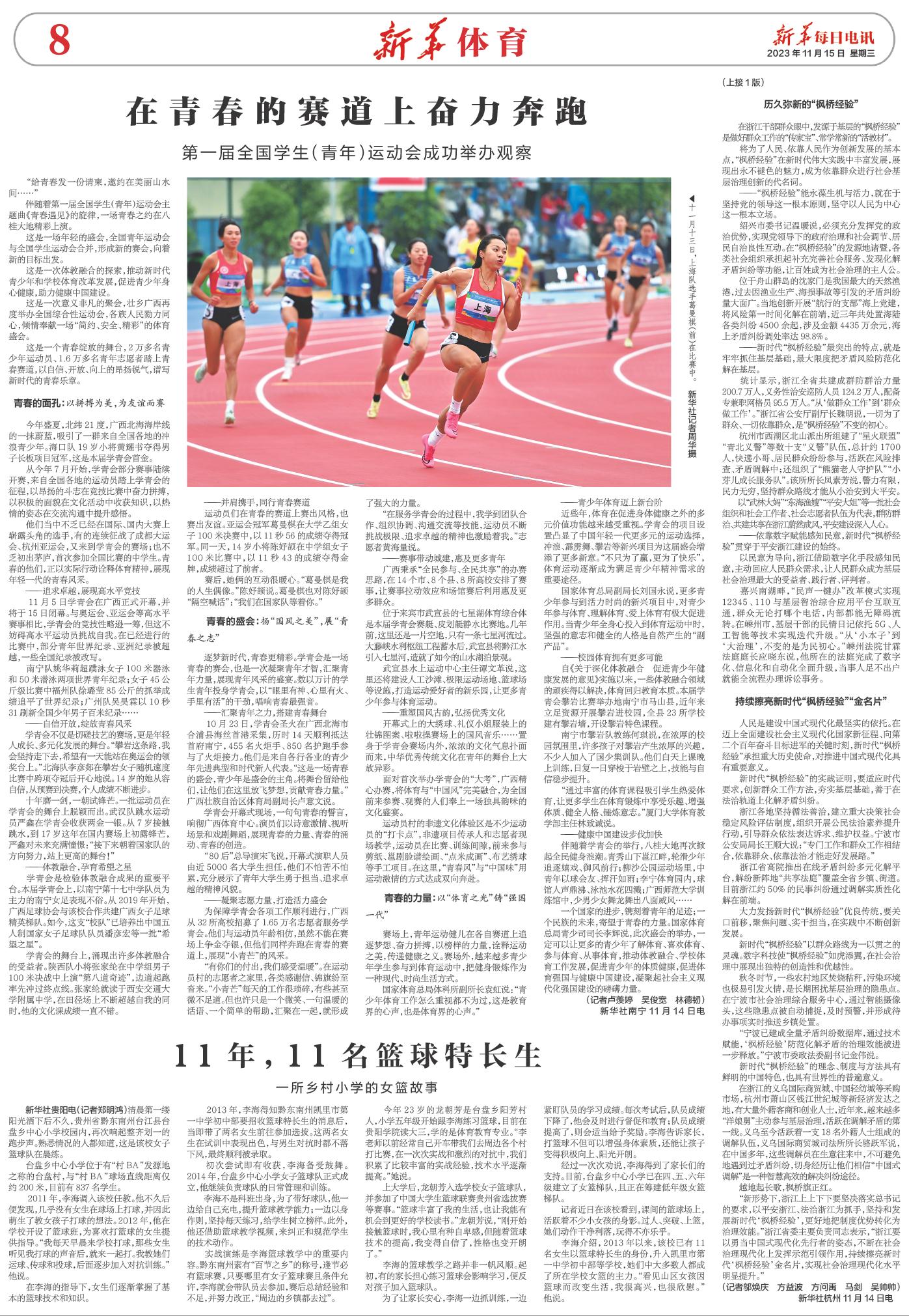 | ( 2023-11-15 ) 稿件来源:新华每日电讯 新华体育 |