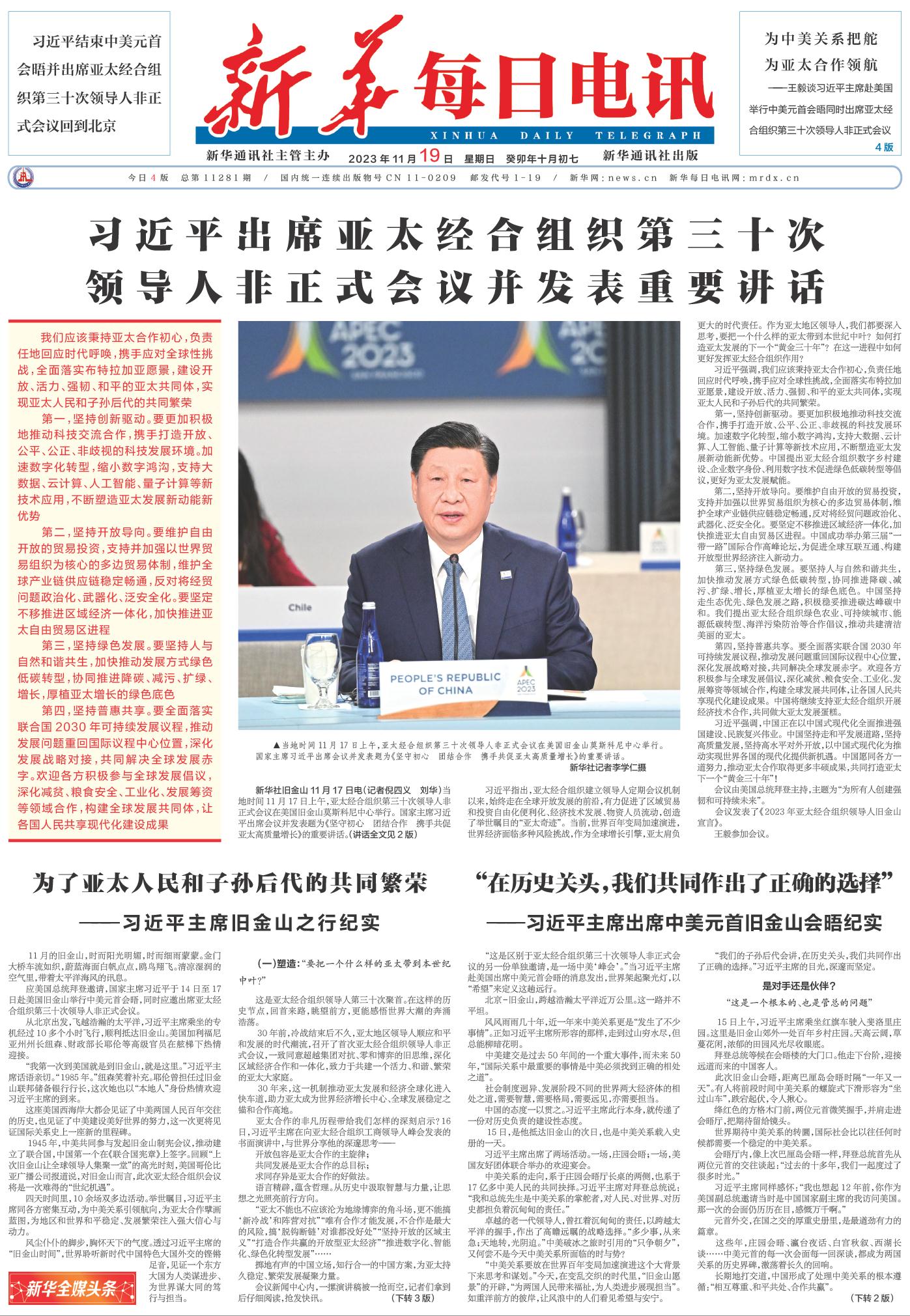 ( 2023-11-19 ) 稿件来源:新华每日电讯 要 闻