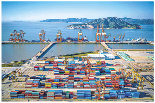 这是11月22日拍摄的温州港状元岙集装箱码头。 新华社记者江汉摄 |