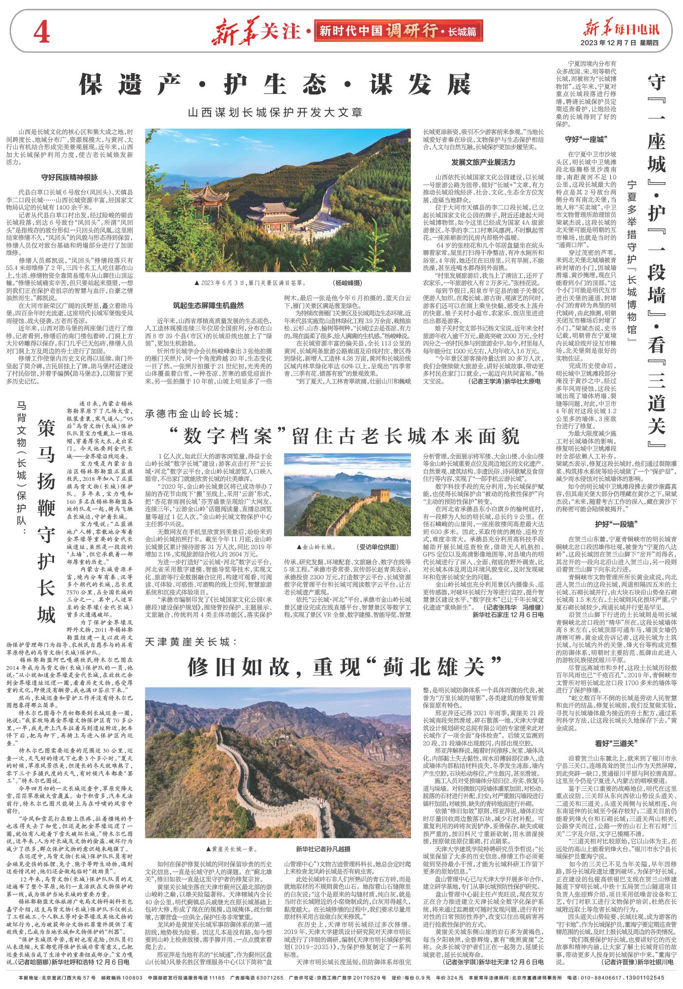 | ( 2023-12-07 ) 稿件来源:新华每日电讯 新华关注·新时代中国调研行·长城篇 |