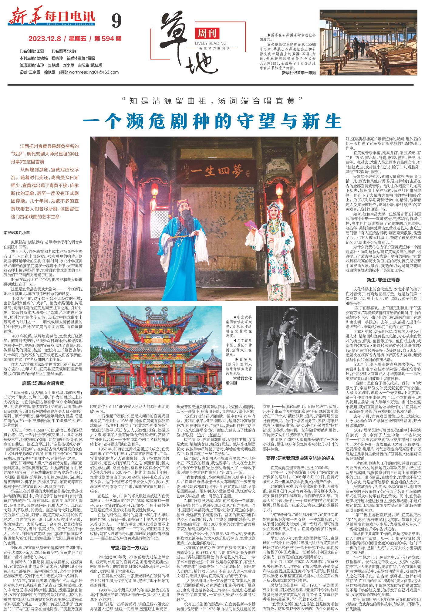 他介绍,2006年成功入选非遗后,宜黄戏相关保护传承工作得到了极大推进,许多专家和从业者更加重视宜黄戏的相关研究,探讨宜黄戏源流,收集整理宜黄戏剧本,成立宜黄戏传习所,整理戏曲文物和唱腔。