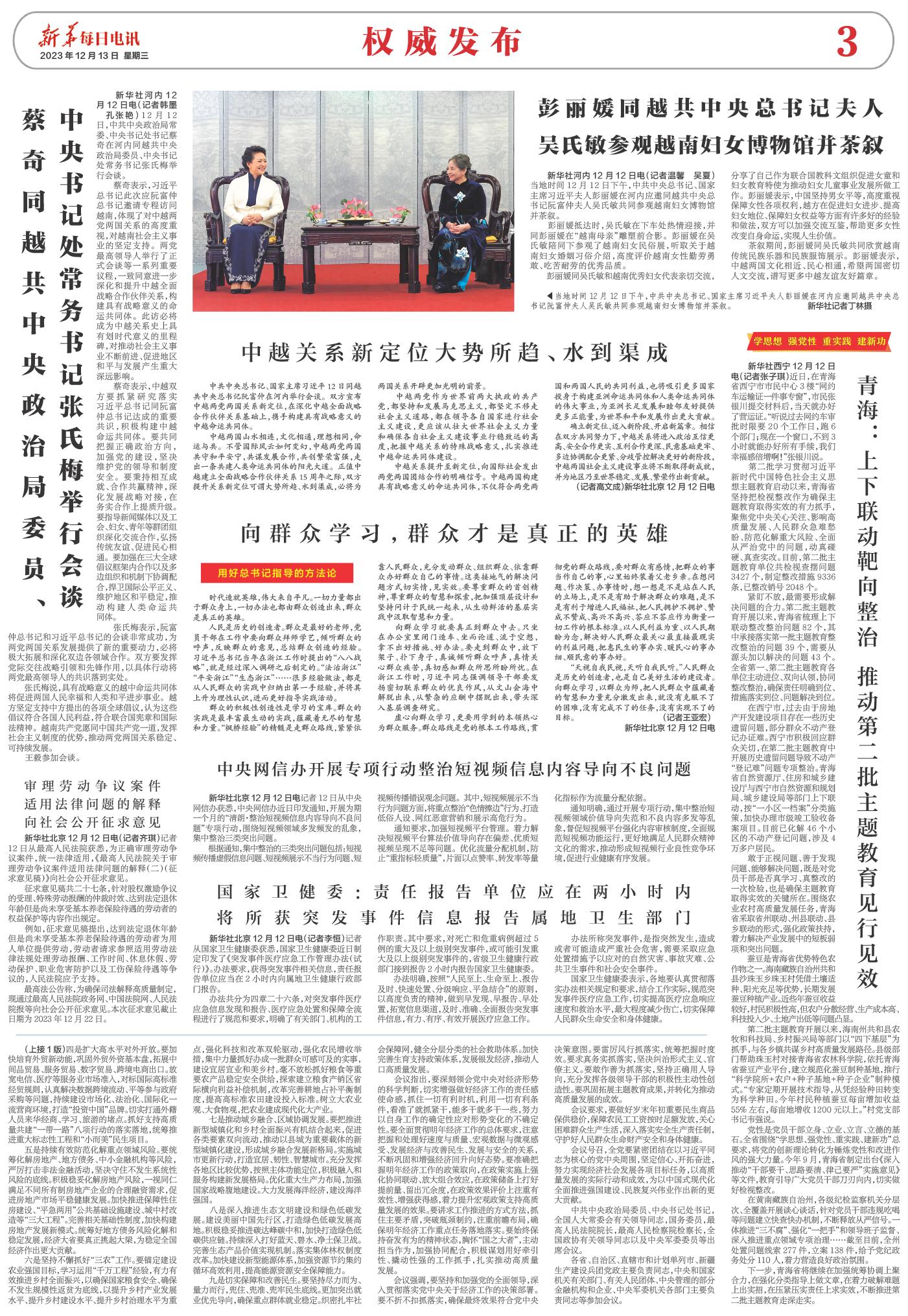 | ( 2023-12-13 ) 稿件来源:新华每日电讯 权威发布 |