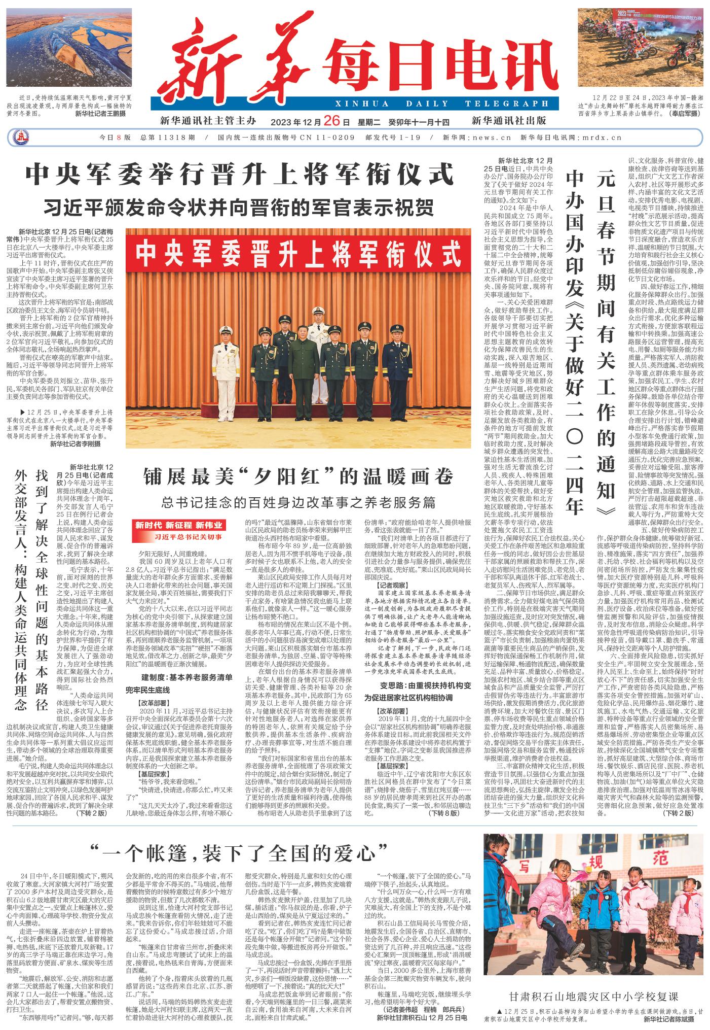 | ( 2023-12-26 ) 稿件来源:新华每日电讯 要 闻 |