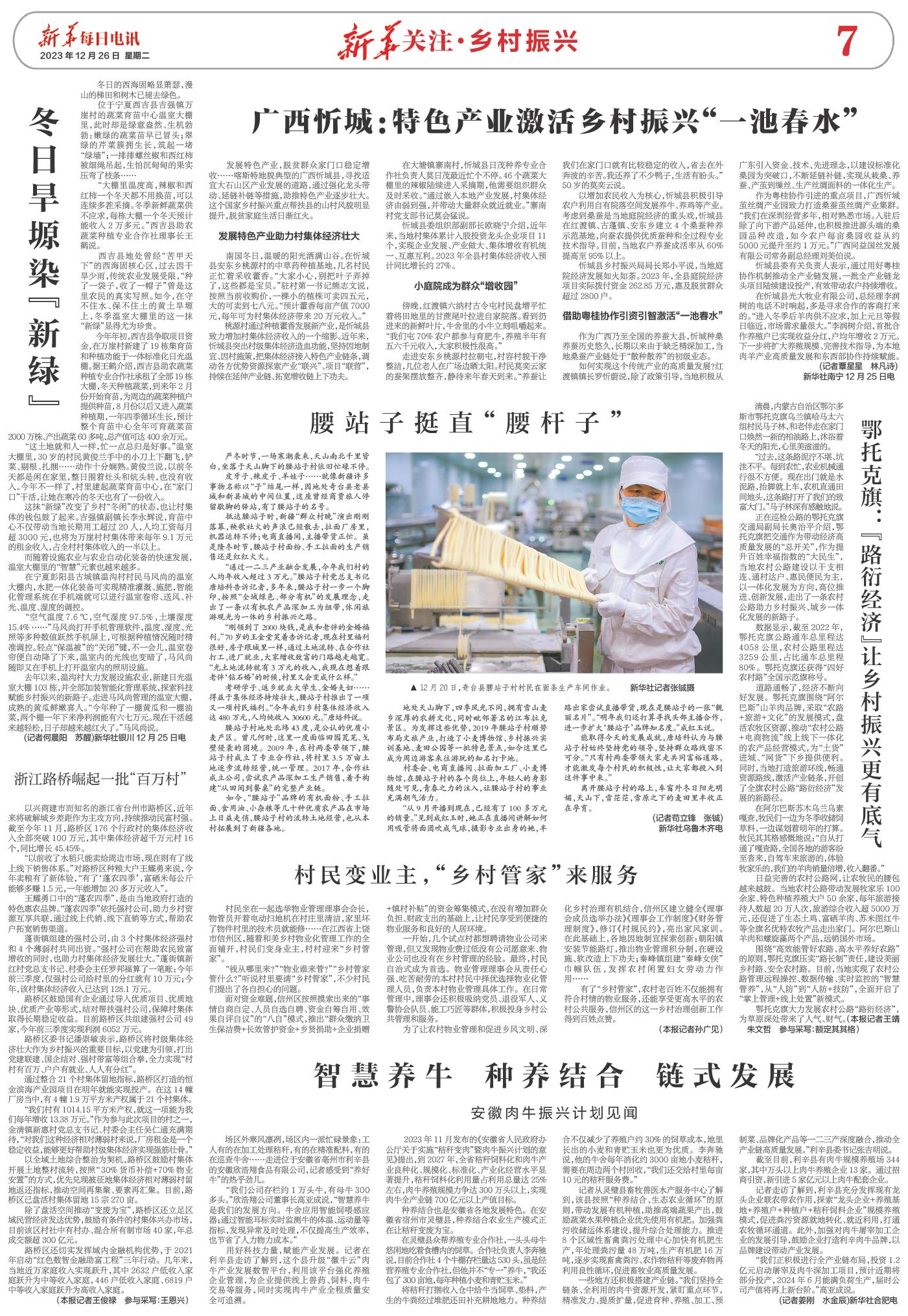 | ( 2023-12-26 ) 稿件来源:新华每日电讯 新华关注·乡村振兴 |
