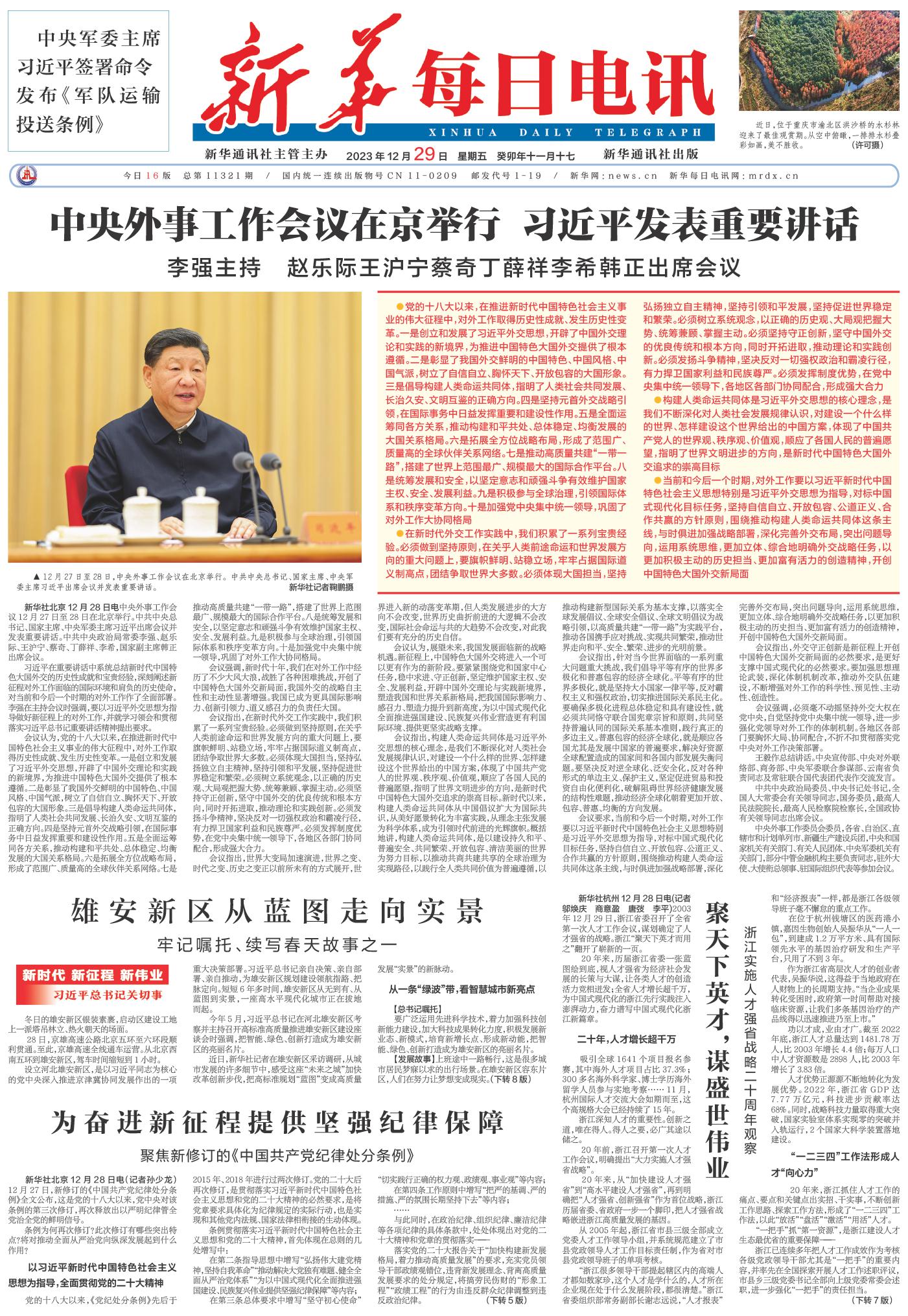 | ( 2023-12-29 ) 稿件来源:新华每日电讯 要 闻 |