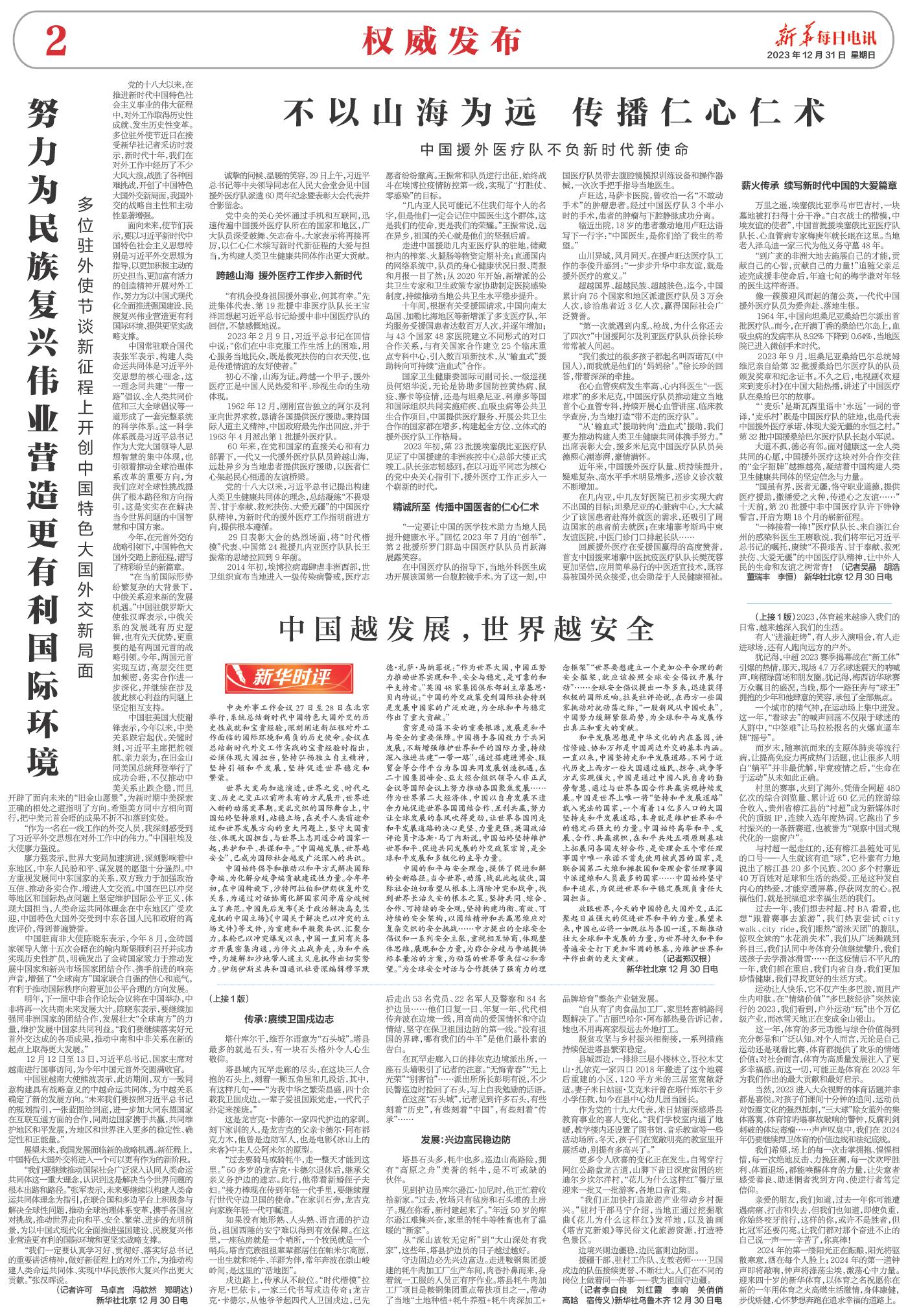 2023年2月9日,习近平总书记在回信中说:“你们在中非克服工作生活上的困难,用心服务当地民众,既是救死扶伤的白衣天使,也是传递情谊的友好使者。”