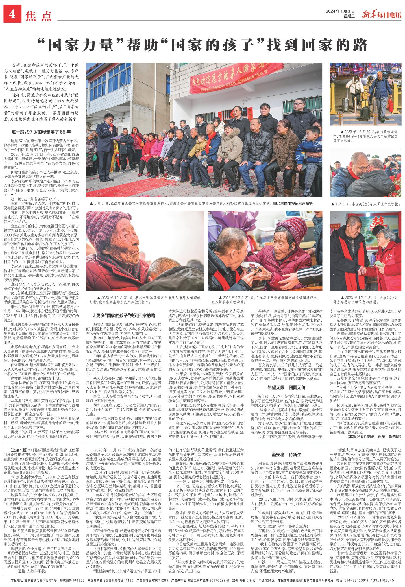 女儿告诉他,国家正在开展“团圆行动”,像他这样与父母失散多年的人,可以去公安部门履行相关手续,通过采集血样、分析比对DNA数据来寻亲。