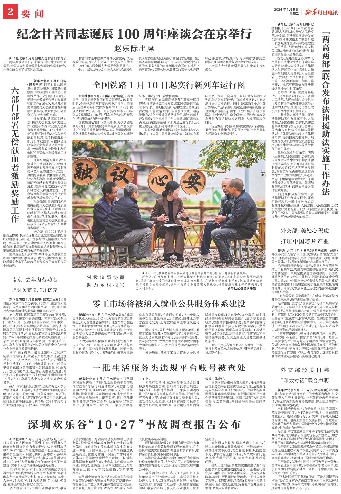 | ( 2024-01-09 ) 稿件来源:新华每日电讯 要闻 |