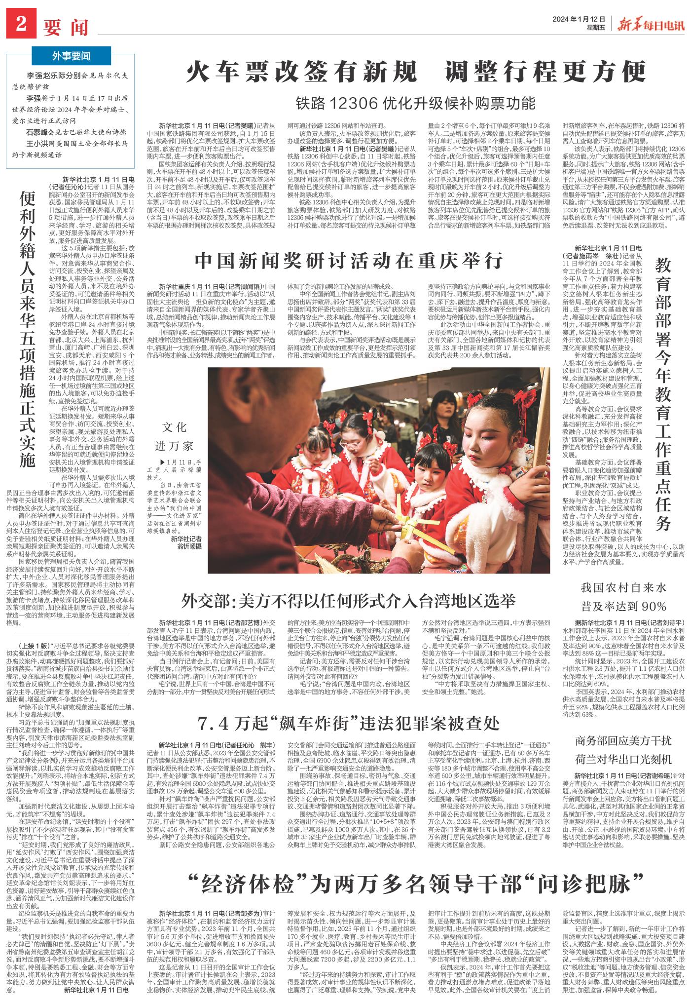 | ( 2024-01-12 ) 稿件来源:新华每日电讯 要闻 |
