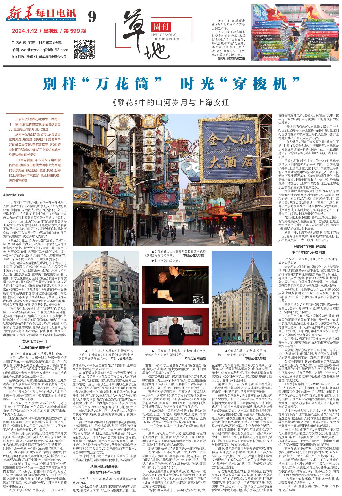 最近,随着电视剧《繁花》热播,透过“繁花”这支岁月“万花筒”、这部时光“穿梭机”,一段段关于上海的珍贵记忆又跃将出来,成为这座城市乃至大江南北的焦点话题。在中央广播电视总台、腾讯视频、东方卫视和江苏卫视,《繁花》收视率和播放量一路走高;相关阅读平台显示,每天有40多万人同时在线搜索并阅读《繁花》原著,各大书店上架的《繁花》一时“洛阳纸贵”。与《繁花》创作关联度很高的金宇澄非虚构回忆集《回望》也十分走俏。《繁花》不仅是在上海本地走红,甚至已成为五湖四海、老老少少最近端着手机百看不厌的剧集,普通话夹着各地方言,边看边讨论,好不热闹。