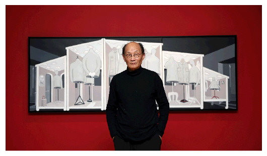 ▲1月8日,在上海东一美术馆,作家金宇澄站在自己的画作《隧道》前。本报记者刘颖摄 |