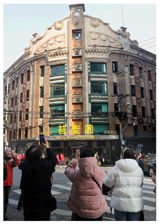 ▲1月9日,市民游客在拍摄黄河路上的苔圣园酒家。苔圣园是《繁花》剧中至真园的主要原型之一。