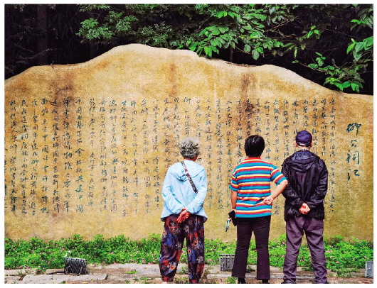 ▲在纪念柳敬亭而建的柳园,游客品读《柳公祠记》。本报记者朱旭东摄 |