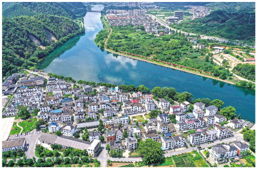 ▲在浙江省衢州市开化县拍摄的钱塘江源头河——马金溪沿岸金星村。当地最大限度地保留流域滩地滩林,将“固堤+绿岸+慢道”结合建设,带动乡村旅游和民宿经济大力发展(2023年8月2日摄)。新华社记者黄宗治摄 |