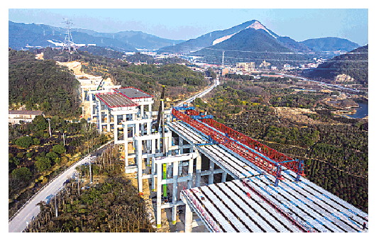 柯桥至诸暨高速公路工程诸暨店口镇中村水库大桥施工现场(1月15日摄)。该高速也是杭州都市区环线高速的重要部分。新华社记者徐昱摄