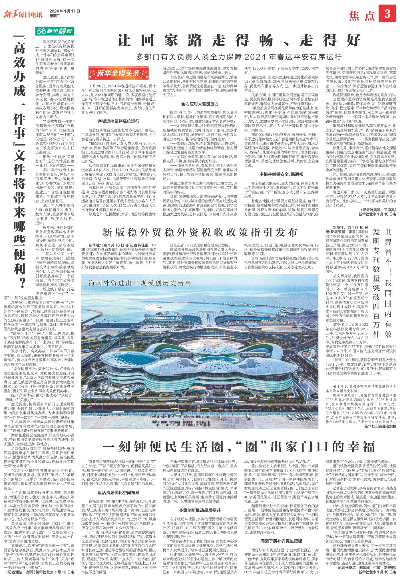 | ( 2024-01-17 ) 稿件来源:新华每日电讯 焦点 |