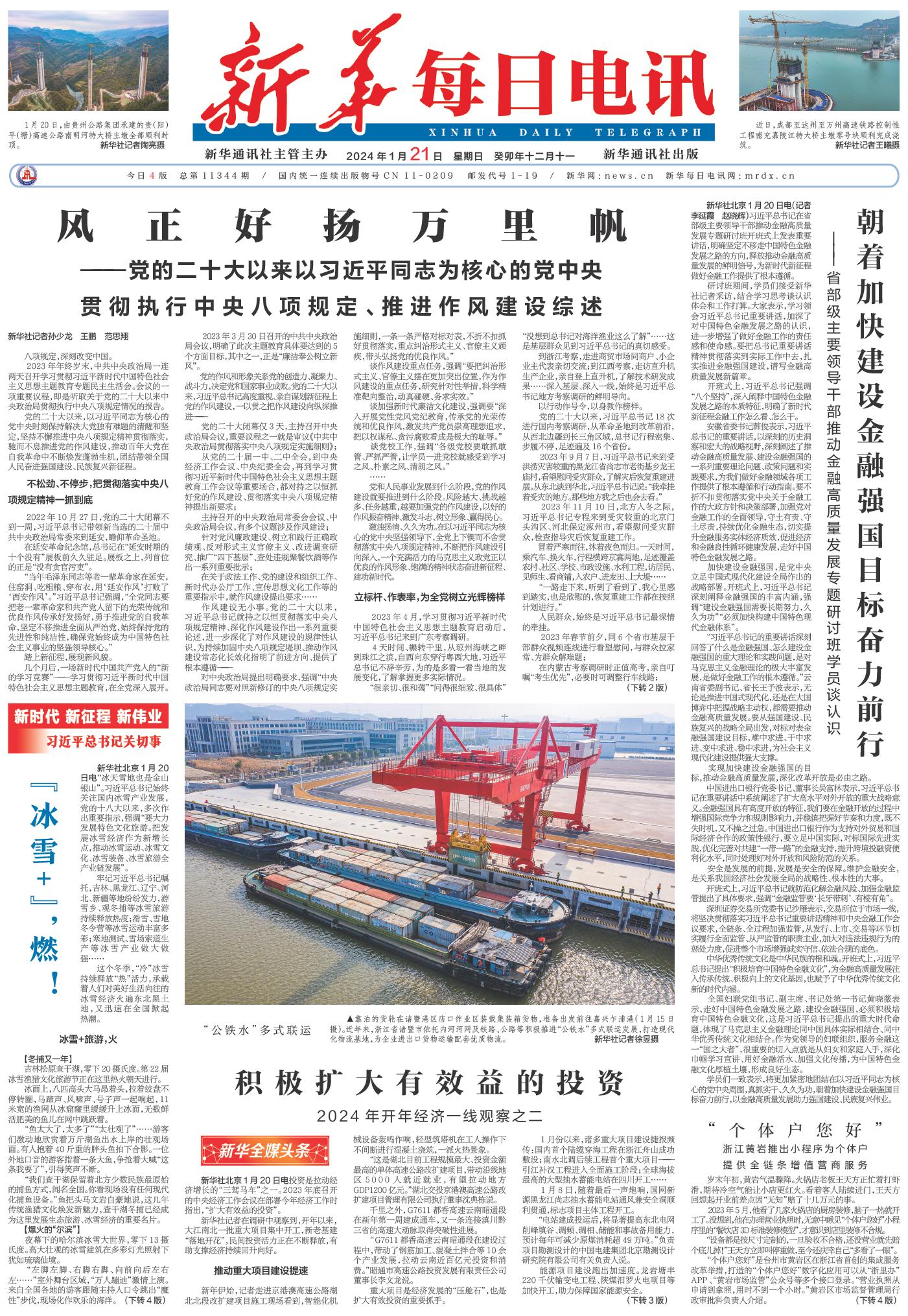 | ( 2024-01-21 ) 稿件来源:新华每日电讯 要闻 |