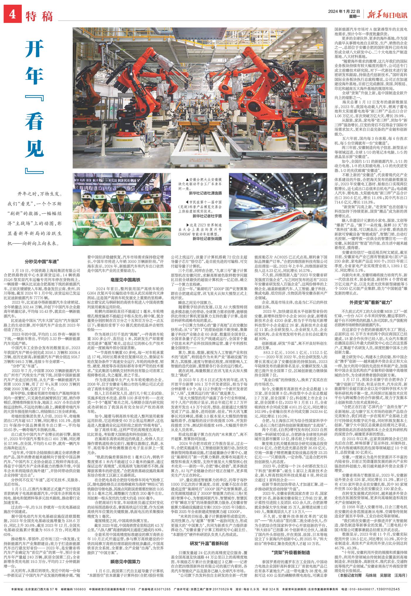 向新向未来。安徽明确将接力培育汽车、新一代信息技术、装备制造、新材料4个营收破万亿元级产业,以及先进光伏和新型储能等5个5000亿元级产业集群,助力“中国制造”爆发新的增长点。