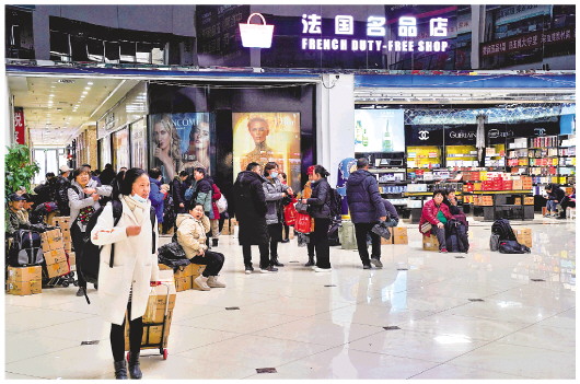▲游客在中哈霍尔果斯国际边境合作中心内购物(1月14日摄)。进入2024年以来,位于新疆自贸试验区霍尔果斯片区的中哈霍尔果斯国际边境合作中心迎来客流高峰。数据显示,2024年1月1日至15日,经霍尔果斯国际边境合作中心出入园人员达19万余人次。 新华社记者赵戈摄
