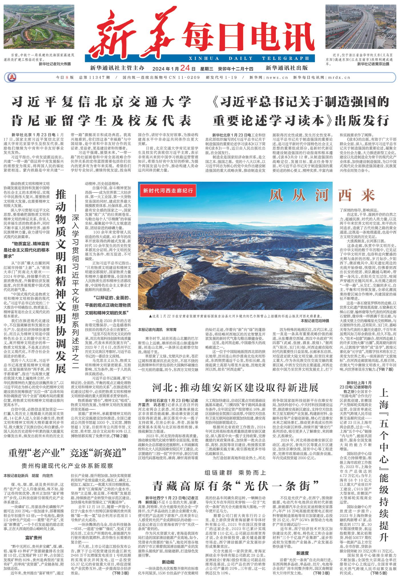 | ( 2024-01-24 ) 稿件来源:新华每日电讯 要闻 |