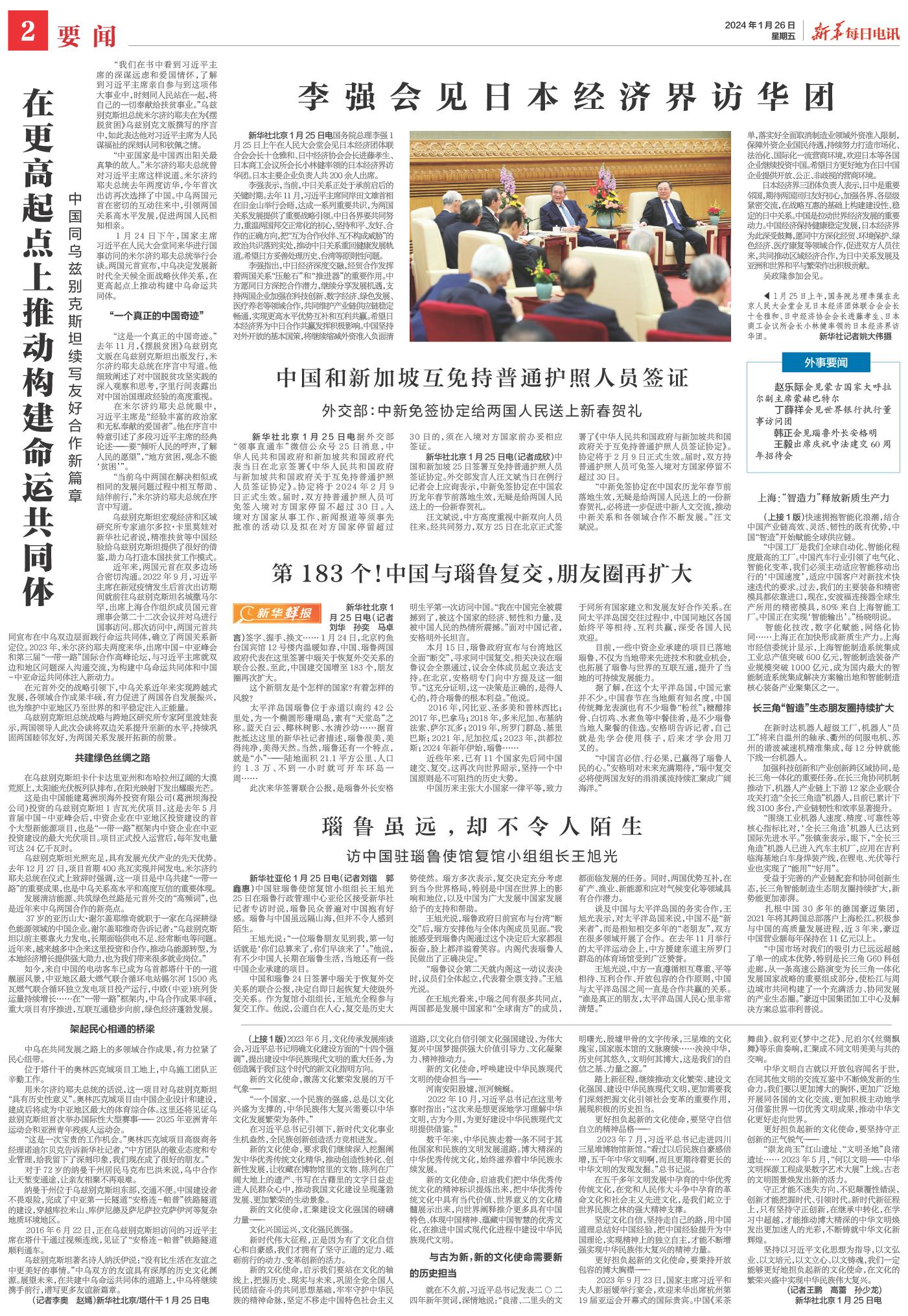 | ( 2024-01-26 ) 稿件来源:新华每日电讯 要闻 |