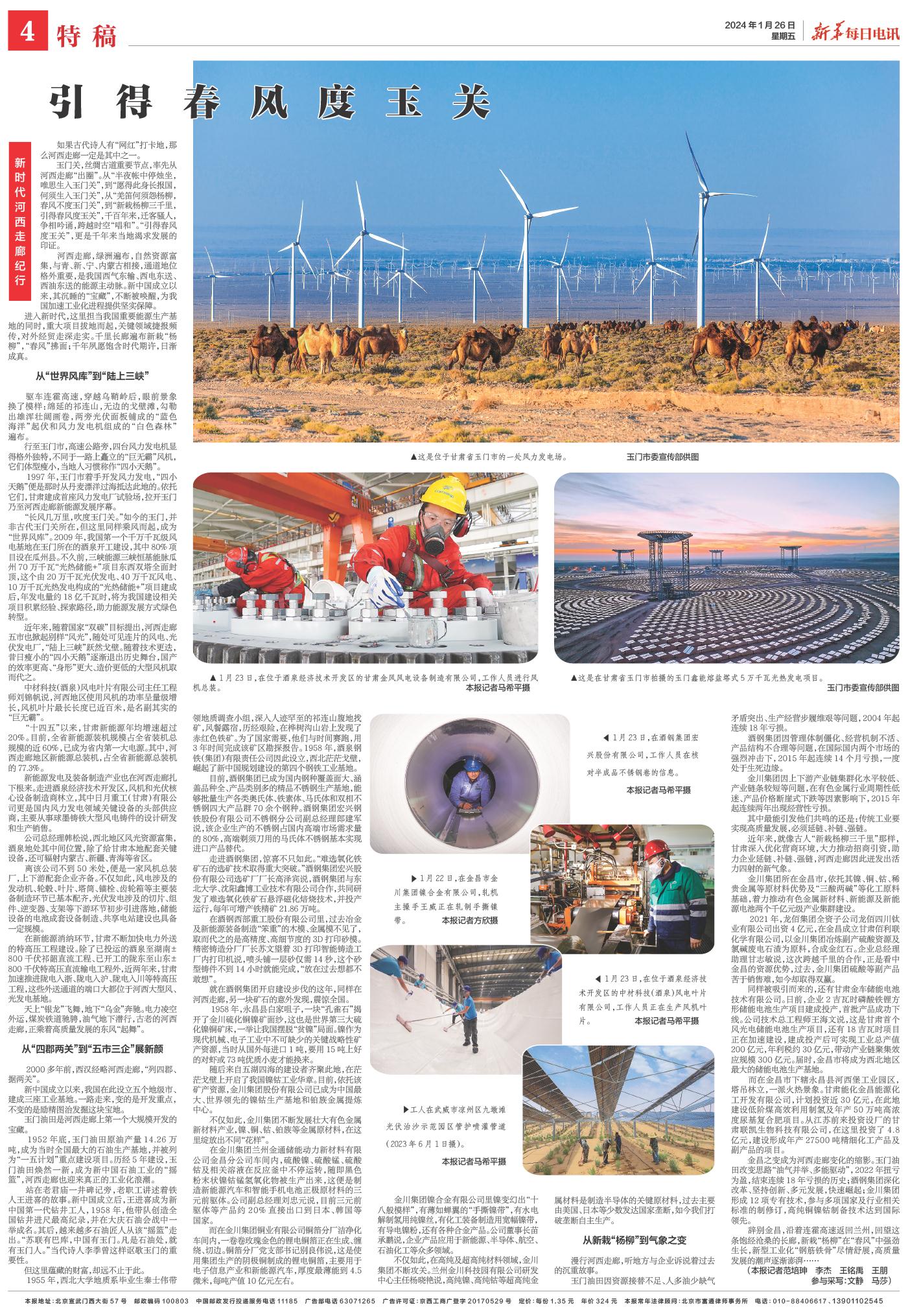 金昌之变成为河西走廊变化的缩影。玉门油田改变思路“油气并举、多能驱动”,2022年扭亏为盈,结束连续18年亏损的历史;酒钢集团深化改革、坚持创新、多元发展,快速崛起;金川集团形成12项专有技术,参与多项国家及行业相关标准的制修订,高纯铜镍钴制备技术达到国际领先。